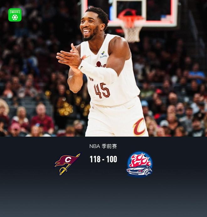 北京时间10月15日进行的一场NBA季前赛中,克利夫兰骑士队对阵底特律活塞队。半场结束骑士队以62-57领先,半场结束骑士队以118-100领先。克利夫兰骑士队米切尔得到17分、2个篮板和3次助攻,阿伦得到15分、6个篮板和2次助攻。底特律活塞队的托比亚斯·哈里斯得到19分、5个篮板和1次助攻,丹尼斯·詹金斯得到19分、2个篮板和6次助攻。第一节,骑士队的米切尔得到13分,活塞队的罗恩·霍兰得到9分。首节战罢,骑士队42-31领先活塞队。第二节,骑士队的亨特拿下6分,活塞队的托比亚斯·哈里斯拿下4分。半场结束,骑士62-57领先活塞。第三节,骑士队的阿伦拿下5分,活塞队的托比亚斯·哈里斯得到12分。 第三节结束,骑士队86-77领先活塞队。在四第节,骑士队的朗佐·鲍尔拿下5分。丹尼斯·詹金斯为活塞队拿下9分,最终骑士队以118-100击败活塞队。全场数据:克利夫兰骑士队米切尔17分2篮板3助攻3抢断;阿伦15分6篮板2助攻1抢断2盖帽;迪恩·韦德15分、9个篮板、1次助攻、1次盖帽。底特律活塞队的托比亚斯·哈里斯得到19分、5个篮板、1次助攻和1次盖帽,丹尼斯·詹金斯得到19分、2个篮板、6次助攻和1次抢断,罗恩·霍兰得到11分、4个篮板、2次助攻、1次抢断和1次盖帽。克利夫兰骑士队首发阵容:米切尔、阿伦、亨特、梅里尔、埃文·莫布里;底特律活塞队:托比亚斯·哈里斯、丹尼斯·詹金斯、奥萨尔·汤普森、杰伦·杜伦、邓肯·罗宾逊。